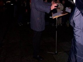 Am 03.12.2002 versetzten wir unter Mitwirkung desSchüler-Lehrer-Eltern-Chores und Mitgliedern des Schulorchesters den Bismarckplatz mit einem "Offenen Singen" in Weihnachtsstimmung.