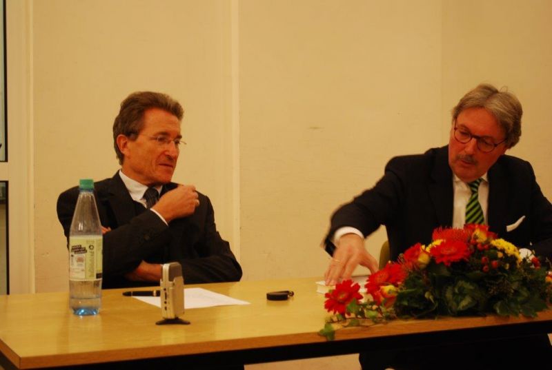 Wolfgang Huber, seines Zeichens langjähriger Vorsitzender der EKD und Bischof a. D., stattete unserer Schule am Mittwoch, dem 20.11.2013, dem ursprünglichen Buß- und Bettag, im Rahmen des 73. Moltke-Forums seinen Besuch ab. Thema seines Vortrags war die „Ethik des Zusammenlebens“, und wie von einem Kirchenmann nicht anders zu erwarten, schlug er hinsichtlich der Ausschmückung seines Themas versöhnliche, verbindende und Brücken bauende Worte an. Als erste Grundlage des Angewiesenseins auf die Gemeinschaft (= Ethik im engeren Sinne Hubers) nannte er, dass Gewalt gegen andere weder zulässig noch legitim sei. Man dürfe niemand verloren geben. Eine zweite Grundlage sei die, dass man zu den Dingen stehen müsse, die einem wichtig seien und von denen man überzeugt sei, dass sie stattfinden sollten. Ein dritter Eckpfeiler sei die „ethische Vernetzung“, den er auch „weltbürgerliches Ethos“ nannte; hier gehe es um das Einüben von Verantwortung, welches er am besten in den klassischen Bildungseinrichtungen verankert sieht. Seine übergreifende These lautete zum Schluss, dass der Mensch als unhintergehbares Beziehungswesen „Freiheit (zu) verantworten“ habe. Einem allseitigen Toleranzbegriff erteilte er allerdings eine so kaum erwartete Absage – Motto : „Wer nach allen Seiten offen ist, kann nicht dicht sein.“ Lang anhaltender Beifall für einen sprachlich geschliffenen Vortrag, dem zur Freude des Organisators 146 Zuhörer/-innen beiwohnten.