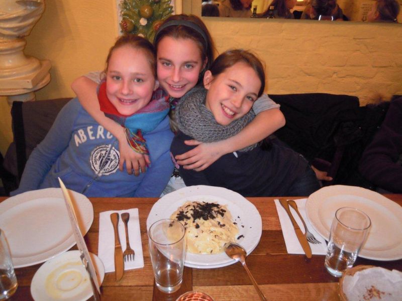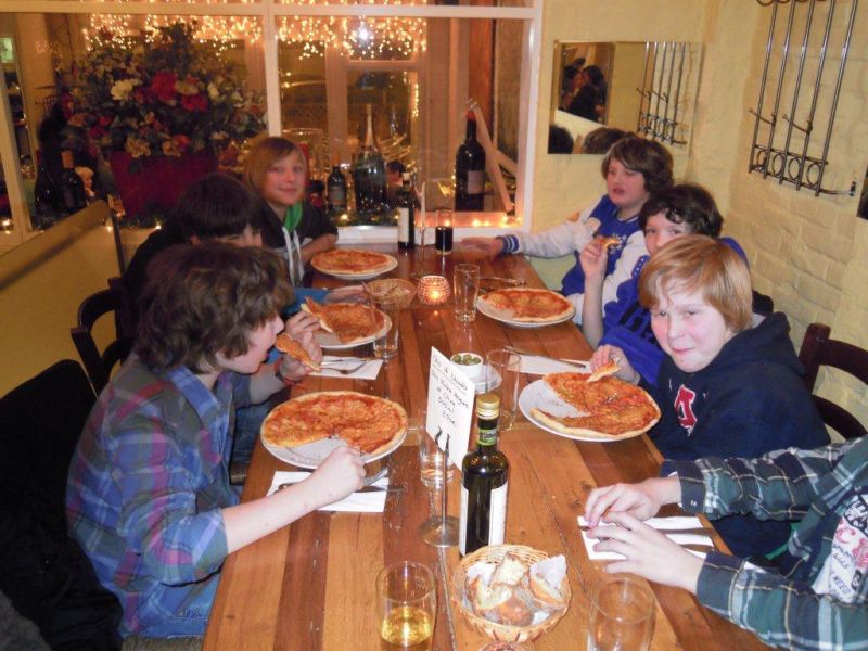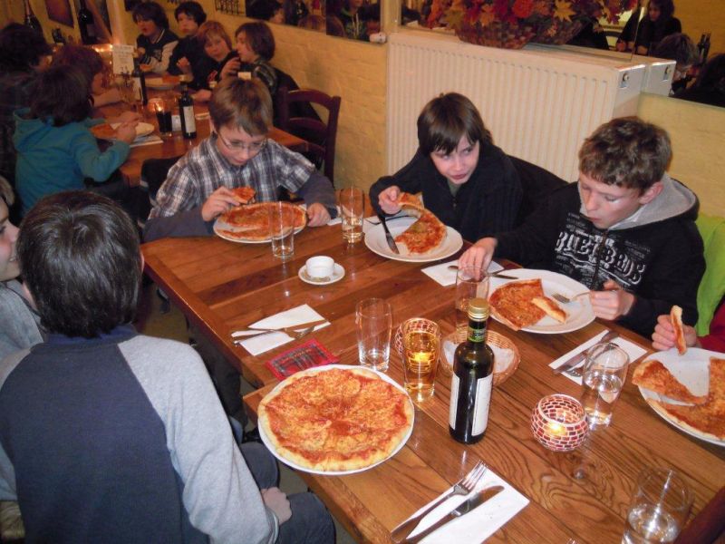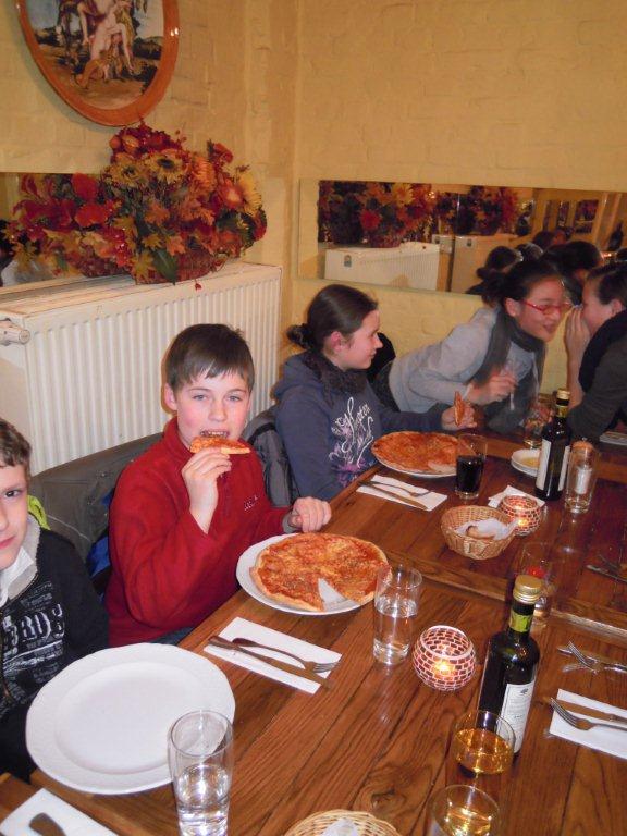 Kurz vor dem Countdown zu den Halbjahreszeugnissen - 10-2-2012 - versammelte sich die Klasse 6c gemeinsam mit ihrem Klassenlehrer, Herrn van Randenborgh, und zwei ihrer Tutoren am Mittwochabend, dem 8.2.2012, beim "Italiener", um sich lukullisch für die anstehenden „Giftblätter“ zu rüsten. Bei Pizza und Pasta unterhielt man sich über Gott und die Welt, vertrieb sich auch bisweilen die Zeit mit gemeinsamen Handyspielen und „feierte“ Halbzeit in der Unterstufenzeit. Alle Schülerinnen und Schüler bekundeten anschließend ihre gesteigerte Motivation, das zweite Halbjahr im Hinblick auf einen guten Abschluss Richtung 7. Klasse anzugehen. Dann hätte ja der Abend seine Schuldigkeit getan. Jedenfalls wünschen wir von dieser Stelle allen Schülerinnen und Schülern unserer Schule ein sorgenfreies Zeugnis, und sollte sich die ein oder andere “Falte“ doch eingestellt haben, einen guten Start in ein besseres 2. Halbjahr,