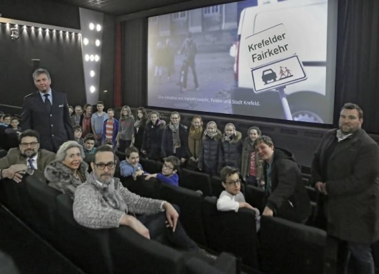 Krefeld. Die Mädchen und Jungen der 8b des Gymnasiums am Moltkeplatz spielen im neuen Kinospot der Initiative „Krefelder Fairkehr“ eine Doppelrolle: Zum einen stellen sie sich selbst dar, zum anderen tragen sie als Mitwirkende dazu bei, dass sich die Unfälle mit Kindern im Straßenverkehr durch diesen Kurzfilm verringern. Bei der gestrigen Premiere im Cinemaxx sind sie gebührend aufgeregt, wirkt im 45-Sekunden-Spot doch auch Eishockey-Superstar Christian Ehrhoff mit.