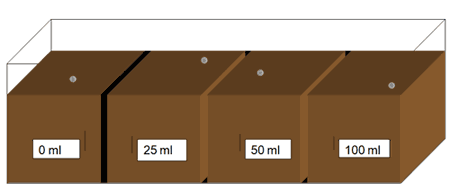 Apparatur: nach oben geöffneter, gekammerter Trog mit lichtundurchlässigen Wänden (siehe Graphik und Foto unten)
