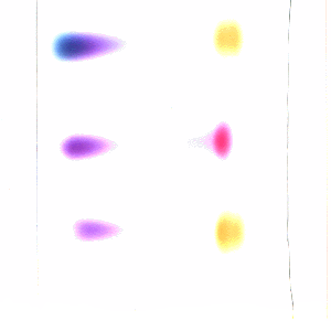Zu Anfang wurden die Paprikas in Stücke geschnitten und jeweils dann in zwei Schalen in Ethanol mit dem Mörser zerrieben, bis wir eine gelbe und eine rote Lösung hatten, die zum Schluss noch filtriert wurde. Dann wurden mit einer Pipette jeweils die rote und gelbe Lösung auf die Chromatographiefolie, so dass man am Ende zwei Flecken hatte. Danach wurde die Chromatographenplatte in eine Trennkammer mit Laufmittel reingesetzt.